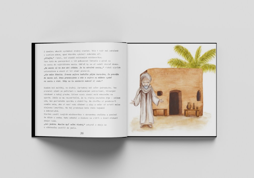 V druhom príbehu sa Teo so svojím tatom nečakane ocitnú uprostred púšte a musia prejsť náročnú cestu do najbližšieho mesta. Našťastie stretnú milého pustovníka, u ktorého prenocujú, a na druhý deň sa vydajú na cestu spolu s karavánou soli. Deti zistia prečo a kam táto karavána putuje, čo je to piesočná búrka, fatamorgána i mnoho ďalších zaujímavých faktov zo života na púšti.