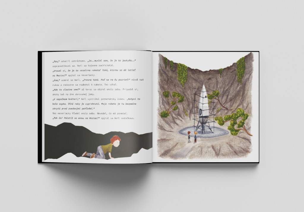V prvom príbehu sa Teo zoznámi s kamarátom Neilom a spolu sa vydajú na neuveriteľnú cestu na Mesiac. Spolu s Teom sa pritom naučíte, čo je to skafander a na čo slúži, ako funguje raketa i ako prebiehal prvý skutočný let na Mesiac.